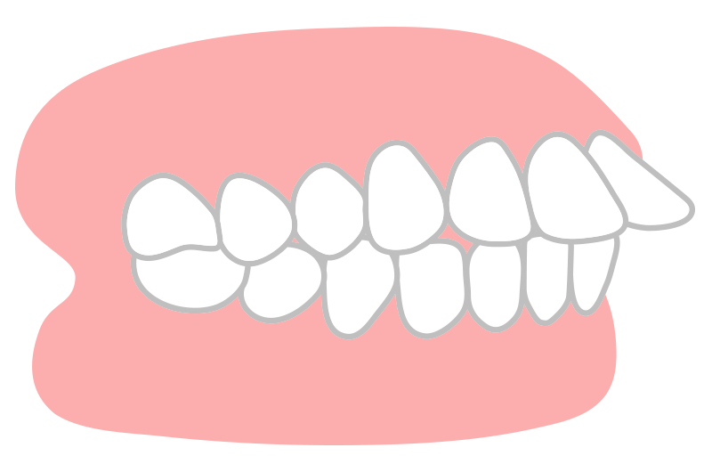 叢生(そうせい)とは、歯が一部混み合って生えている状態を指します。